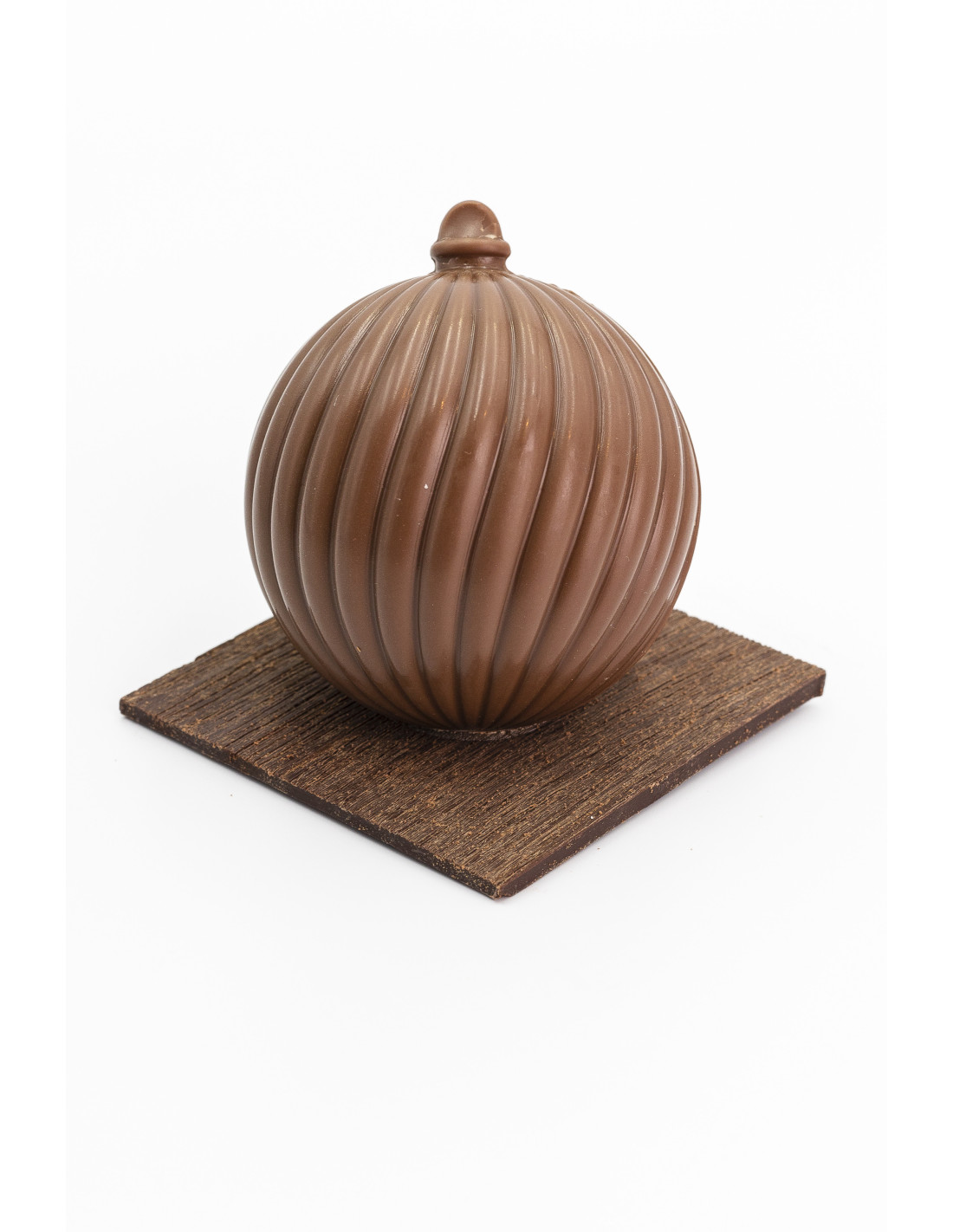 Moulage en chocolat noir, chocolat au lait ou chocolat blanc caramélisé (chocolat blond), garni de fritures