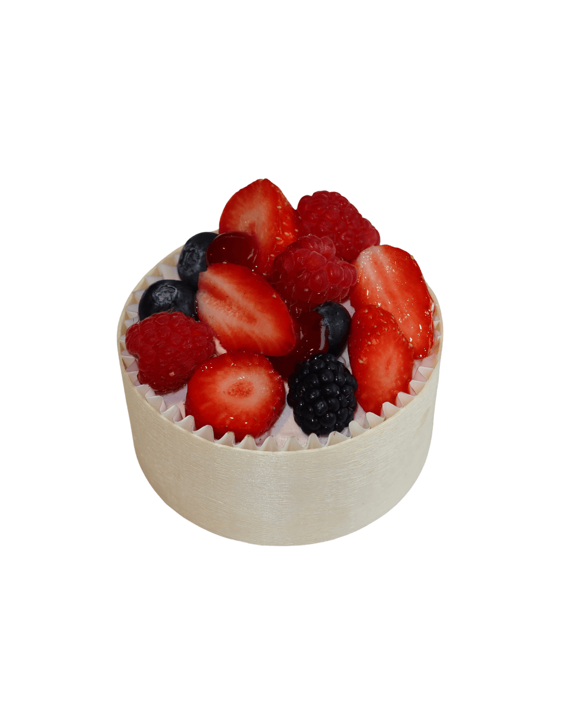 Crème d'amande, mousse philadephia, confit de fraise, fruits frais